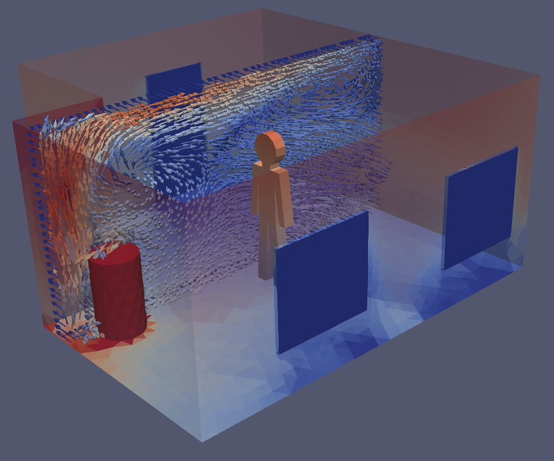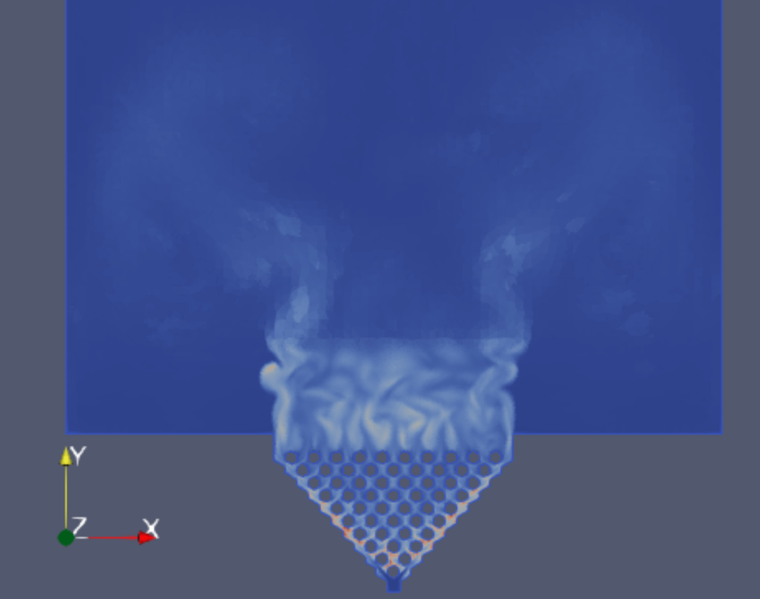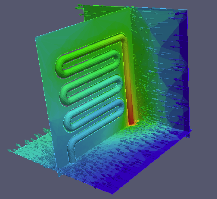 We work on both laminar and turbulent flows, 2D or 3D, whether fluids are compressible or not. Results can be stationary if a stable solution is enough, or time dependent if a periodic behavior or a stabilisation period are of interest.