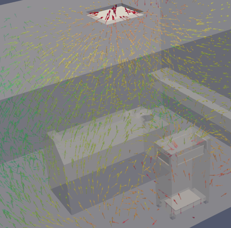 Furthermore, the flow can be different depending on the size and mass of the particle involved. Using the 'particle in cell' model, we can easily determine local concentration of aerosols both around and inside of sensor apparatus.
